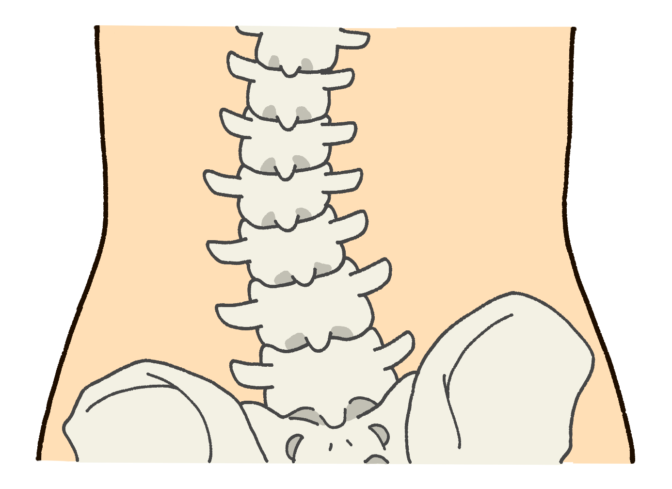 背骨は前から見ると真っ直ぐですが,横から見るとS字状カーブを描いています。頸椎(首)は前に向かってカーブを描き(前弯)、胸椎(背中)は後に向かってカーブを描き(後弯)、腰椎(腰)は前に向かってカーブを描いています。